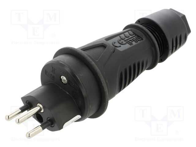 Konnektör: AC güç kaynağı; erkek; fiş; 2P+PE; 250VAC; 10A; siyah