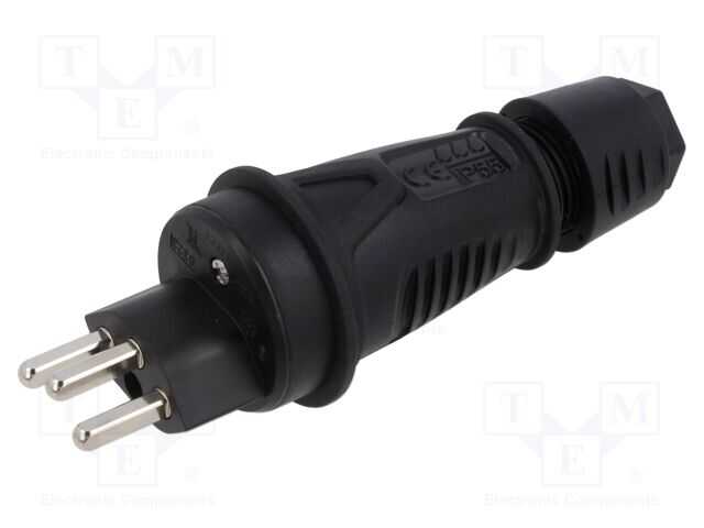 Konnektör: AC güç kaynağı; erkek; fiş; 2P+PE; 250VAC; 16A; siyah