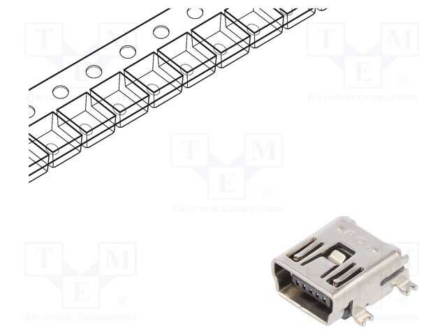 Konnektör: USB B mini; soket; PCB'lerde; SMT,THT; PIN: 5; yatay