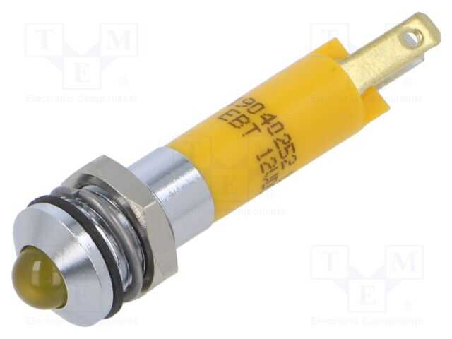 Gösterge: LED; çıkık; sarı; 12VDC; Ø8mm; IP67; metal,plastik; 32mcd