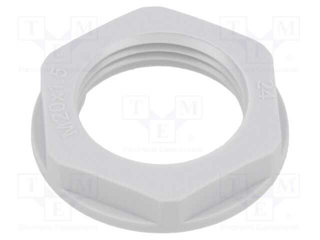 Somun; M20; poliamit; 26mm; açık gri; Diş: metrik; Aralık: 1,5