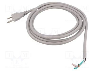 Kablo; 3x18AWG; NEMA 5-15 (B) fiş,teller; PVC; 2,4m; gri; 10A; 125V