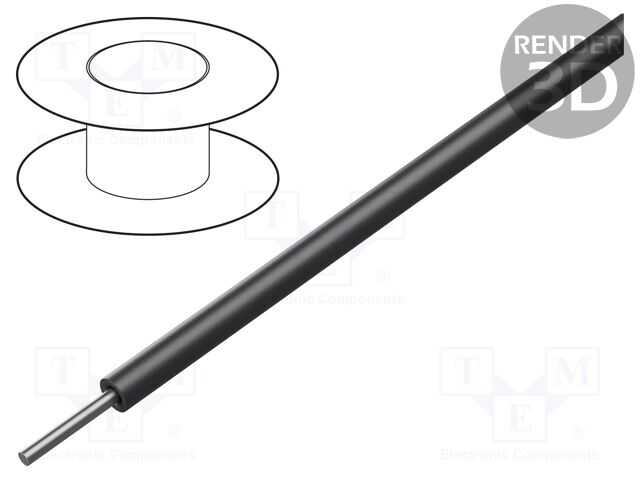 Kablo; HookUp Wire; 30AWG; tek telli; Cu; PTFE; siyah; 250V; 305m
