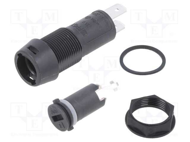 Sigorta tutucu; 5x20mm; 10A; panele; siyah; 250VAC; UL94V-0; FPG1