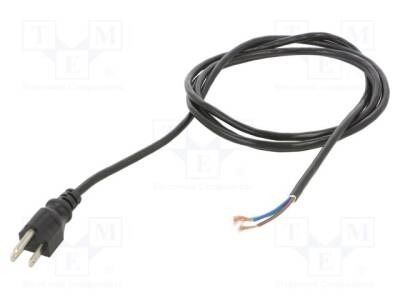 Kablo; 3x18AWG; NEMA 5-15 (B) fiş,teller; PVC; 2m; siyah; 7A; 125V