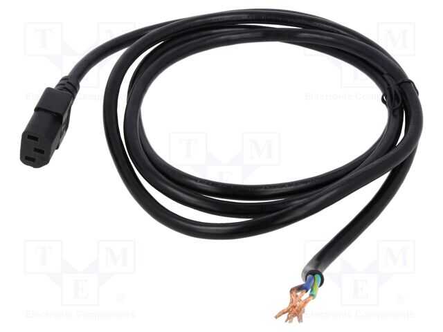 Kablo; 3x18AWG; IEC C13 dişi,teller; PVC; 2m; siyah; 10A; 125V; 60°C