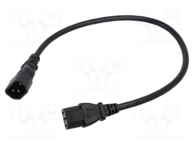 Kablo; 3x18AWG; IEC C13 dişi,IEC C14 erkek; PVC; 0,5m; siyah; 10A