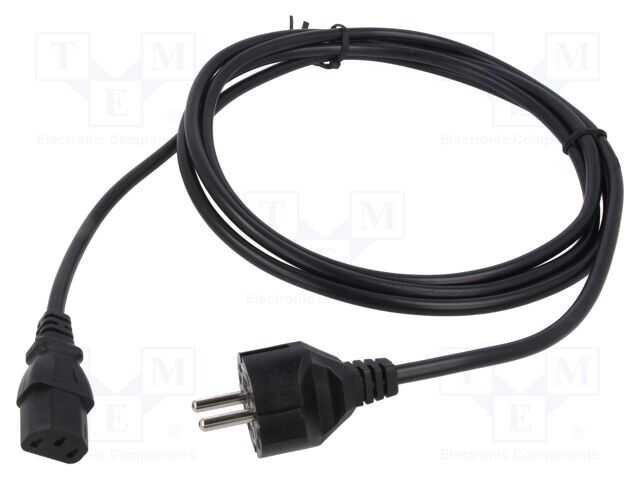Kablo; 3x1mm2; CEE 7/7 (E/F) fiş,IEC C13 dişi; PVC; 2,5m; siyah