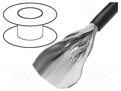 Kablo: şerit; yuvarlak; 1,27mm; bükülmüş; Cu; blendajsız; PVC; siyah