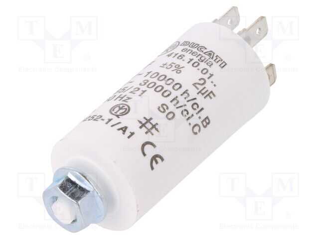 Kapasitör: polipropilen; motorlar, çalıştırma; 2uF; 475VAC; ±5%