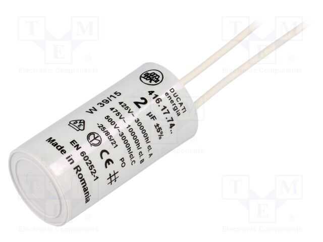 Kapasitör: polipropilen; motorlar, çalıştırma; 2uF; 475VAC; ±5%