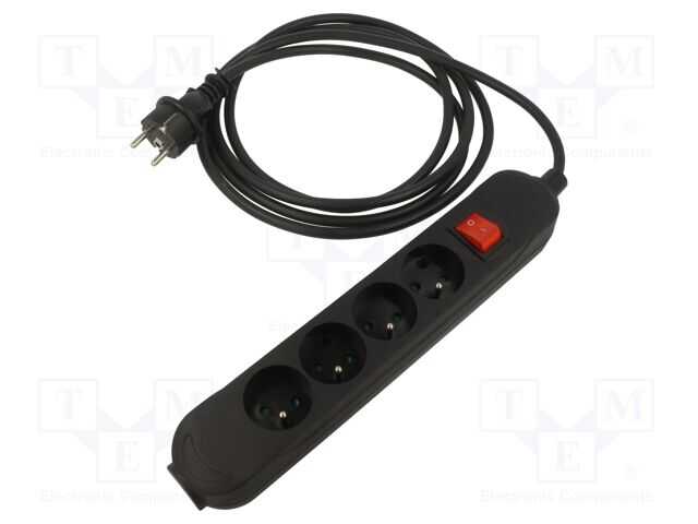 Uzatma kablosu; 3x2,5mm2; Soket: 4; kauçuk; siyah; 1,5m; 16A; PRO