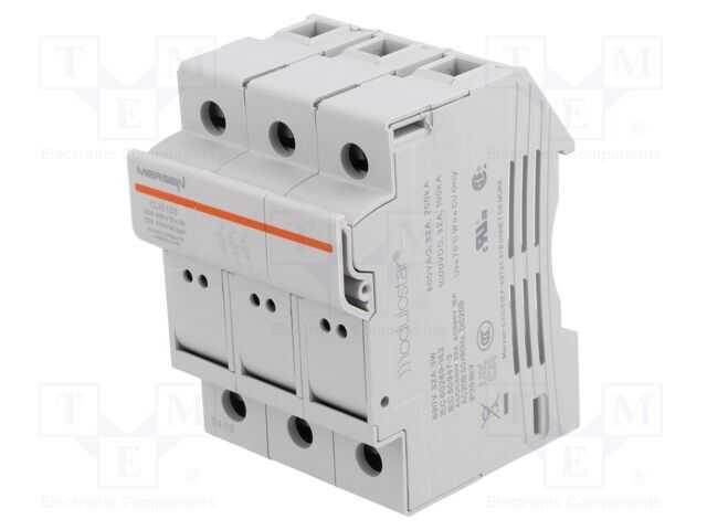 Sigorta tabanı; 10x38mm; DIN raya montaj için; 1kV; Kutup: 3; IP20
