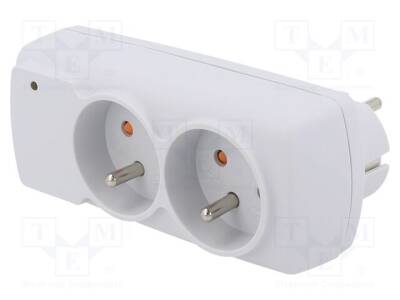 Uzatma kablosu: koruyucu; Soket: 2; 230VAC; 10A; beyaz; 130x56x74mm