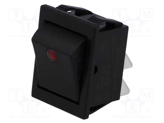 ROCKER; DPST; Poz: 2; ON-OFF; 16A/250VAC; siyah; neon lamba,nokta