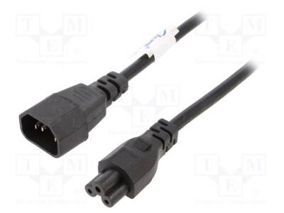 Kablo; 3x0,5mm2; IEC C14 erkek,IEC C5 dişi; PVC; 1,5m; siyah; 2,5A