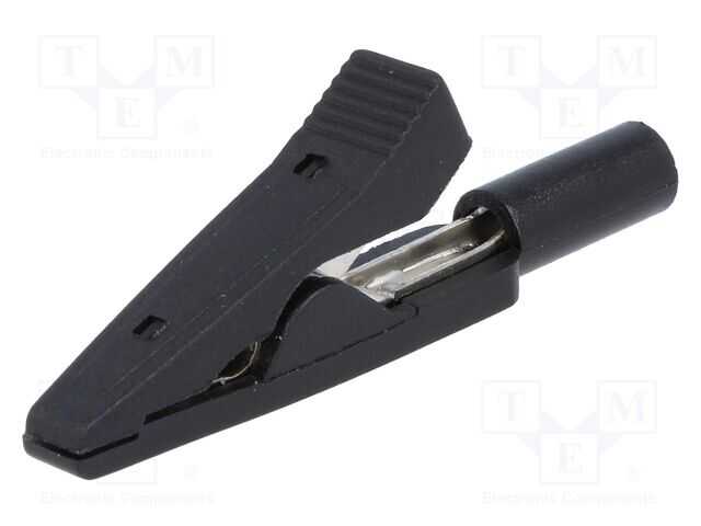 Krokodil pens; 10A; 60VDC; siyah; Toplam uzu: 41,5mm
