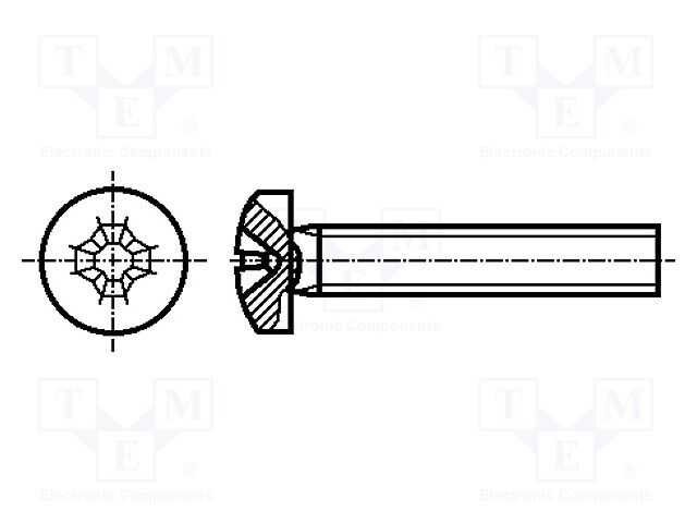Vida; M2,5x6; Baş: silindir başlı; Phillips; PH1; DIN 7985A