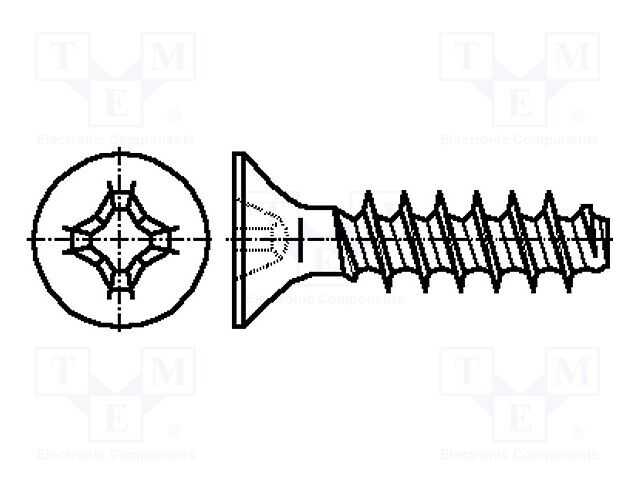 Vida; plastik için; 3,5x16; Baş: havşa; Phillips; PH2; çelik; çinko