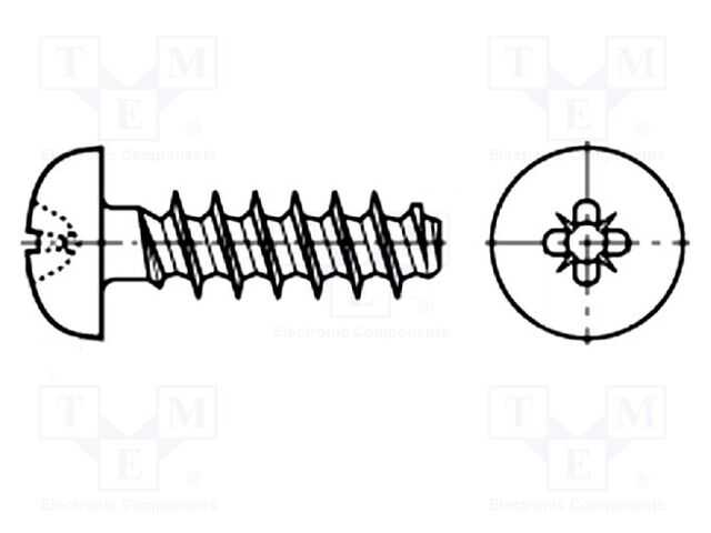 Vida; plastik için; 3x10; Baş: silindir başlı; Pozidriv; PZ1; çelik