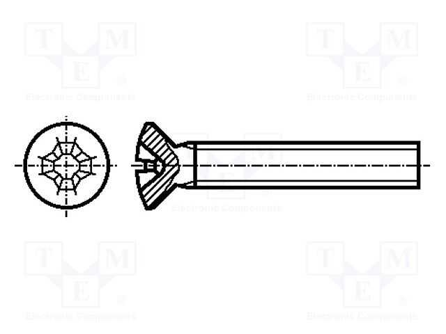 Vida; M3x10; 0,5; Baş: havşa; Phillips; PH1; çelik; çinko; DIN 966A