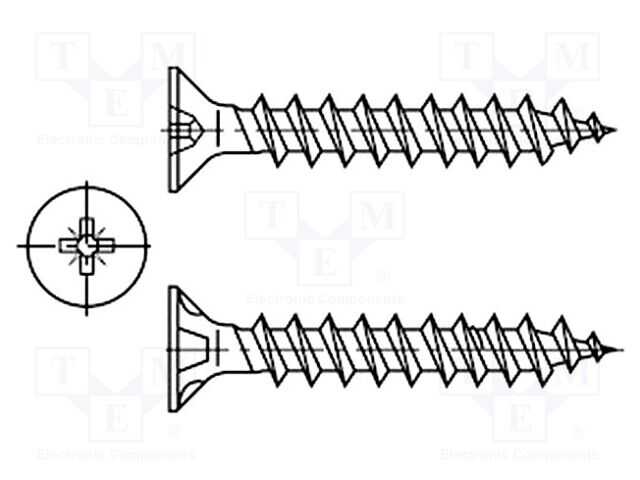 Vida; sunta için; 3x12; Baş: havşa; Pozidriv; PZ1; çelik; çinko
