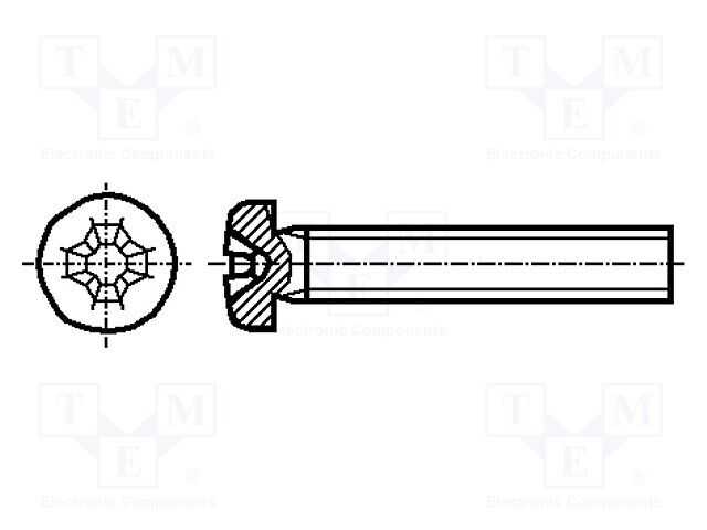 Vida; M3x6; 0,5; Baş: silindir başlı; Phillips; PH2; ISO 7048
