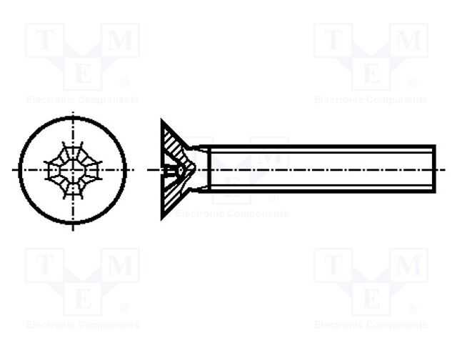 Vida; M6x8; Baş: havşa; Phillips; PH3; çelik; çinko; DIN 965A