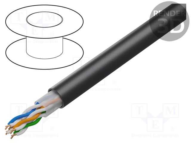 Kablo; BiTLAN,U/UTP; 4x2x23AWG; 6; tek telli; Cu; polietilen; siyah