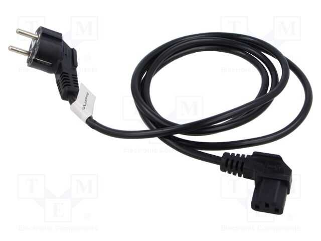 Cable; CEE 7/7 (E/F) plug angled,IEC C13 female angled right