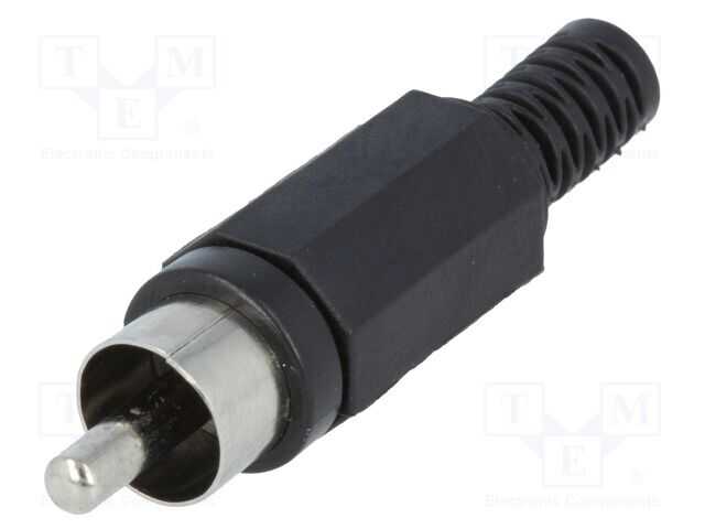 Konnektör: RCA; fiş; erkek; sünmez kısım ile; düz; lehimleme; siyah