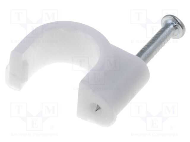 Tutucu; beyaz; yuvarlak kablo üzerine; 100adet; çivili; Ø: 9mm