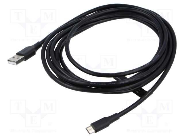 Kablo; USB 2.0; USB A fişi,USB B micro fiş; nikel kaplı; 3m; PVC