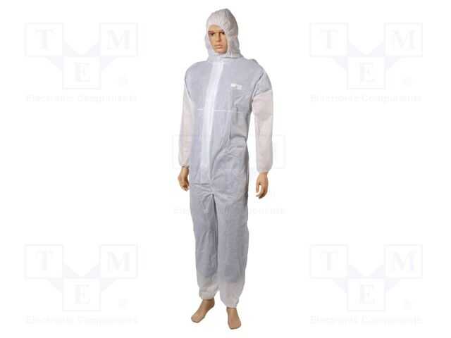 Koruyucu tulum; Boyut: L; beyaz; DT215; kapüşonlu; Koruma: tip 5/6
