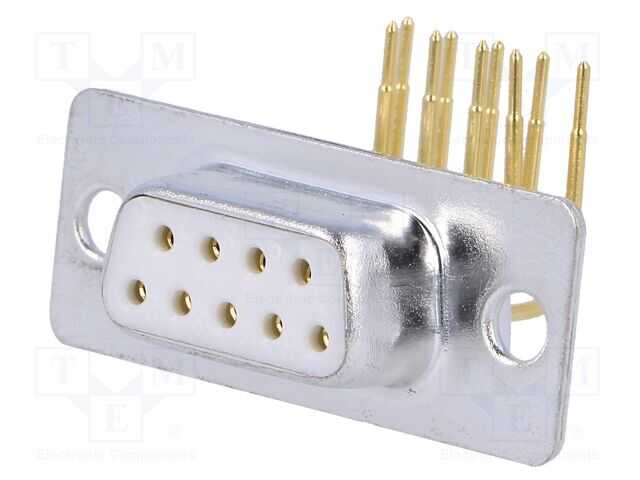 D-Sub; PIN: 9; soket; dişi; PCB'lerde; 90° açılı; THT