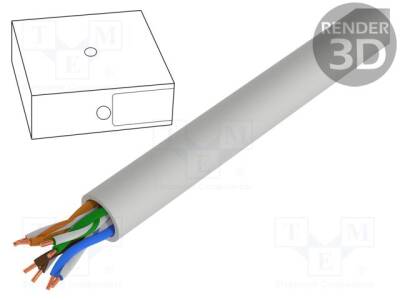 Kablo; U/UTP; 4x2x24AWG; 5e; tek telli; Cu; PVC; gri; 100m; CPR: Eca