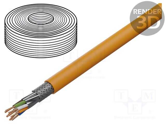 Kablo; S/FTP; 4x2x23AWG; 7; tek telli; LSZH; turuncu; 50m; CPR: Dca