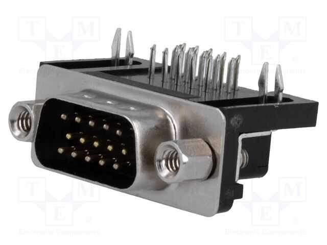 D-Sub HD; PIN: 15; soket; erkek; 90° açılı; THT; Kontaklar: pirinç