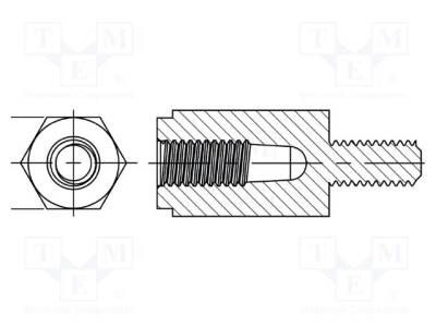 Ara manşon; altı köşe; poliamit 66; M3; M3; U: 15mm; siyah; UL94V-2