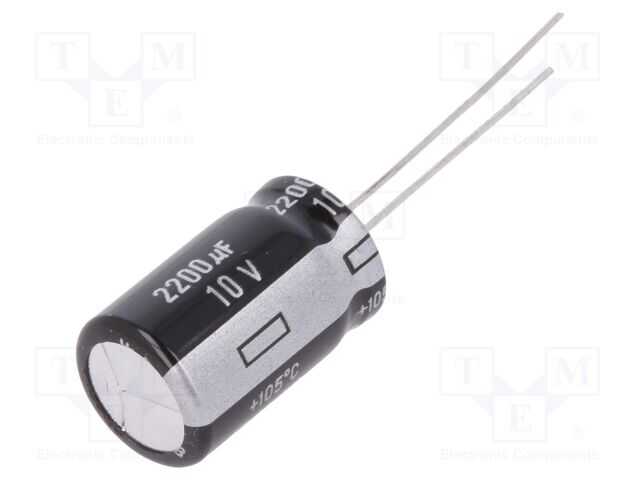 Kapasitör: elektrolitik; THT; 2200uF; 10VDC; Ø12,5x20mm; ±20%