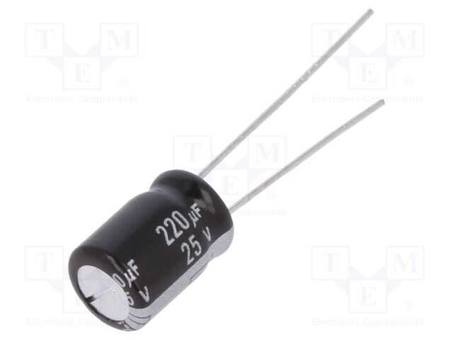 Kapasitör: elektrolitik; THT; 220uF; 25VDC; Ø8x11,5mm; ±20%; 5000h