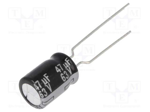 Kapasitör: elektrolitik; THT; 47uF; 63VDC; Ø8x11,5mm; Aralık: 5mm