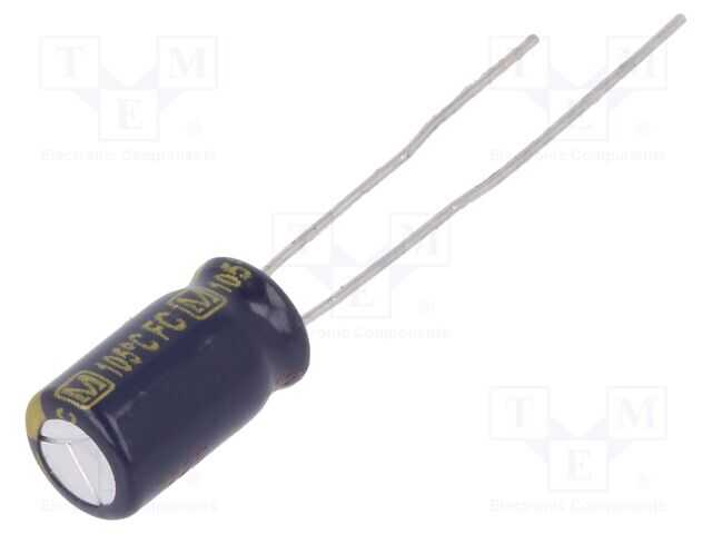 Kapasitör: elektrolitik; low ESR; THT; 100uF; 25VDC; Ø6,3x11,2mm