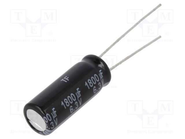 Kapasitör: elektrolitik; low ESR; THT; 1800uF; 6,3VDC; Ø8x20mm