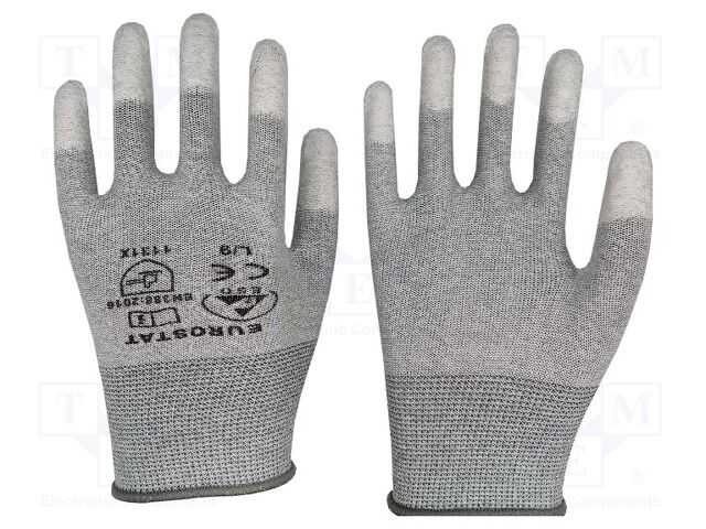Koruyucu eldiven; ESD; L; Özellikler: dağıtıcı; gri