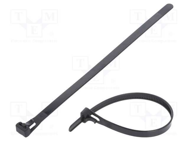 Kablo bağı; çoklu kullanım; L: 200mm; W: 7,6mm; siyah; poliamid