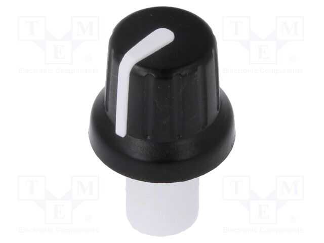 Topuz; işaretçi ile; ABS; Øshaft: 6mm; Ø16x14,4mm; siyah; geçirmeli