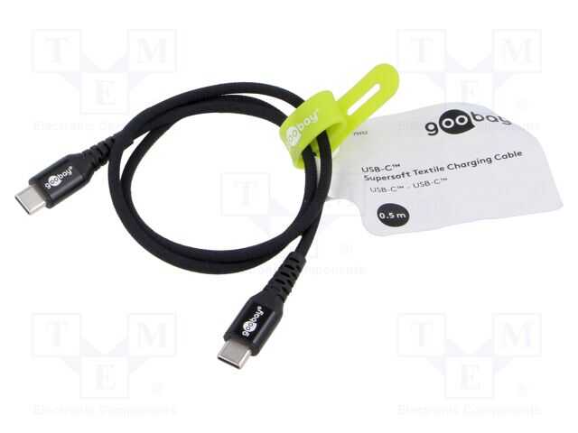 Kablo; USB 2.0; USB C fişi,her iki uçta; 0,5m; siyah; 0,48Gbps