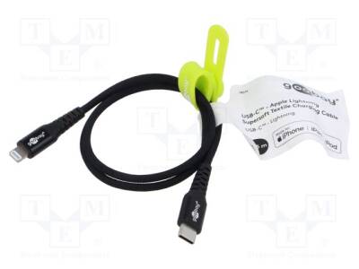 Kablo; USB 2.0; Apple Lightning fiş,USB C fişi; 0,5m; siyah; 60W
