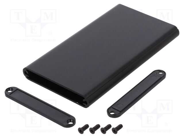 Muhafaza: panelli; 1455; X: 70mm; Y: 120mm; Z: 12mm; alüminyum; siyah